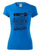 Narozeninové tričko pro ročník 1967. Sháníš originální dárek? Triko pro ročník 1967 v kostce je ten nejlepší dárek, kterým jistě potěšíš. Kolik co stálo? Kdo byl prezident? Kdo se narodil? Všechno tohle a ještě mnohem víc najdeš na našem oslaveneckém triku!