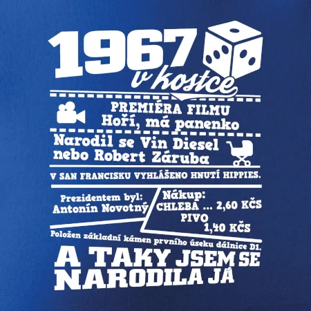 Narozeninové tričko pro ročník 1967. Sháníš originální dárek? Triko pro ročník 1967 v kostce je ten nejlepší dárek, kterým jistě potěšíš. Kolik co stálo? Kdo byl prezident? Kdo se narodil? Všechno tohle a ještě mnohem víc najdeš na našem oslaveneckém triku!