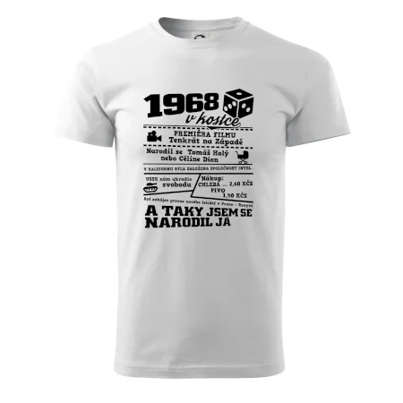 Narozeninové tričko pro ročník 1968. Sháníš originální dárek? Triko pro ročník 1968 v kostce je ten nejlepší dárek, kterým jistě potěšíš. Kolik co stálo? Kdo byl prezident? Kdo se narodil? Všechno tohle a ještě mnohem víc najdeš na našem oslaveneckém triku!