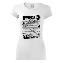 Narozeninové tričko pro ročník 1969. Sháníš originální dárek? Triko pro ročník 1969 v kostce je ten nejlepší dárek, kterým jistě potěšíš. Kolik co stálo? Kdo byl prezident? Kdo se narodil? Všechno tohle a ještě mnohem víc najdeš na našem oslaveneckém triku!