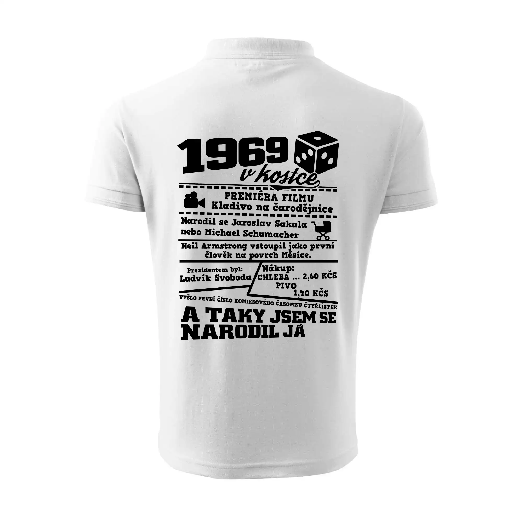 Narozeninové tričko pro ročník 1969. Sháníš originální dárek? Triko pro ročník 1969 v kostce je ten nejlepší dárek, kterým jistě potěšíš. Kolik co stálo? Kdo byl prezident? Kdo se narodil? Všechno tohle a ještě mnohem víc najdeš na našem oslaveneckém triku!