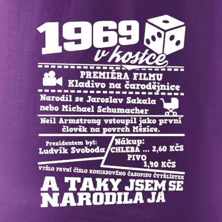 Narozeninové tričko pro ročník 1969. Sháníš originální dárek? Triko pro ročník 1969 v kostce je ten nejlepší dárek, kterým jistě potěšíš. Kolik co stálo? Kdo byl prezident? Kdo se narodil? Všechno tohle a ještě mnohem víc najdeš na našem oslaveneckém triku!