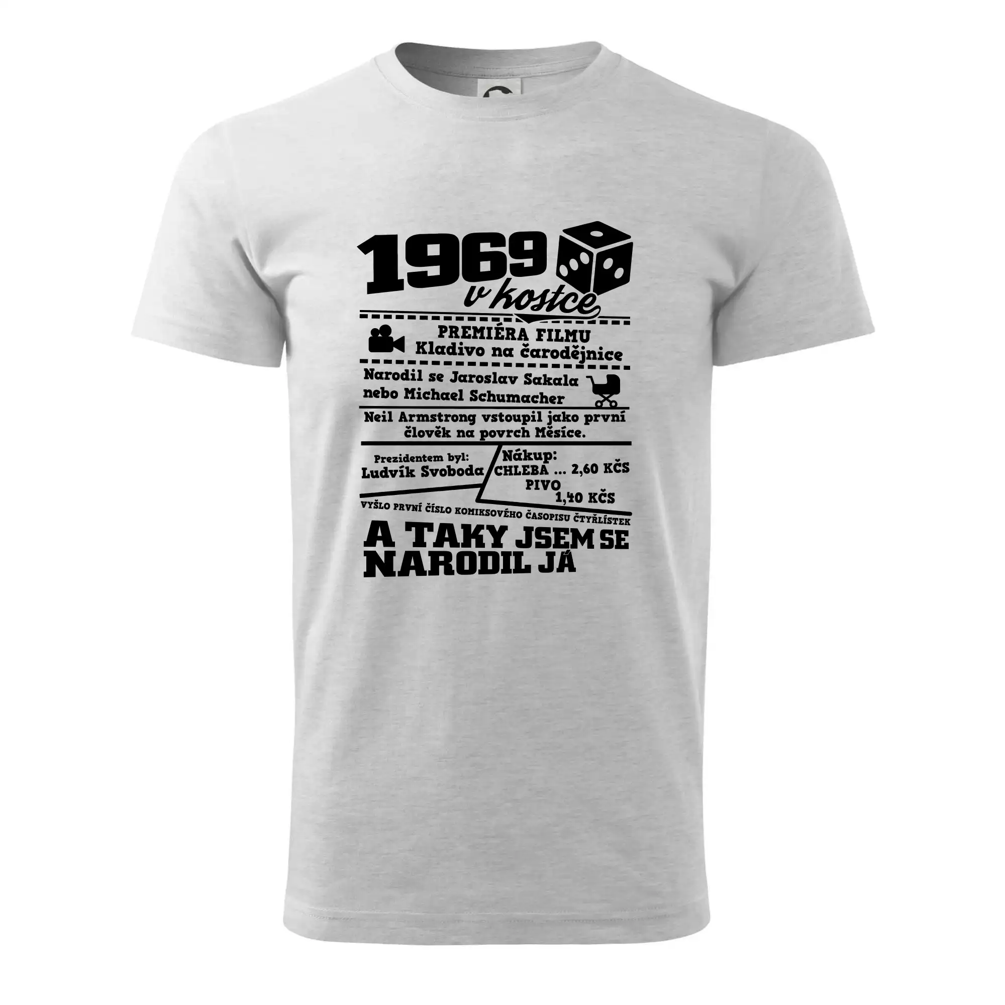 Narozeninové tričko pro ročník 1969. Sháníš originální dárek? Triko pro ročník 1969 v kostce je ten nejlepší dárek, kterým jistě potěšíš. Kolik co stálo? Kdo byl prezident? Kdo se narodil? Všechno tohle a ještě mnohem víc najdeš na našem oslaveneckém triku!