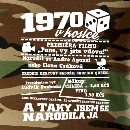 Narozeninové tričko pro ročník 1970. Sháníš originální dárek? Triko pro ročník 1970 v kostce je ten nejlepší dárek, kterým jistě potěšíš. Kolik co stálo? Kdo byl prezident? Kdo se narodil? Všechno tohle a ještě mnohem víc najdeš na našem oslaveneckém triku!