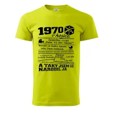 Narozeninové tričko pro ročník 1970. Sháníš originální dárek? Triko pro ročník 1970 v kostce je ten nejlepší dárek, kterým jistě potěšíš. Kolik co stálo? Kdo byl prezident? Kdo se narodil? Všechno tohle a ještě mnohem víc najdeš na našem oslaveneckém triku!
