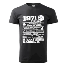 Narozeninové tričko pro ročník 1971. Sháníš originální dárek? Triko pro ročník 1971 v kostce je ten nejlepší dárek, kterým jistě potěšíš. Kolik co stálo? Kdo byl prezident? Kdo se narodil? Všechno tohle a ještě mnohem víc najdeš na našem oslaveneckém triku!