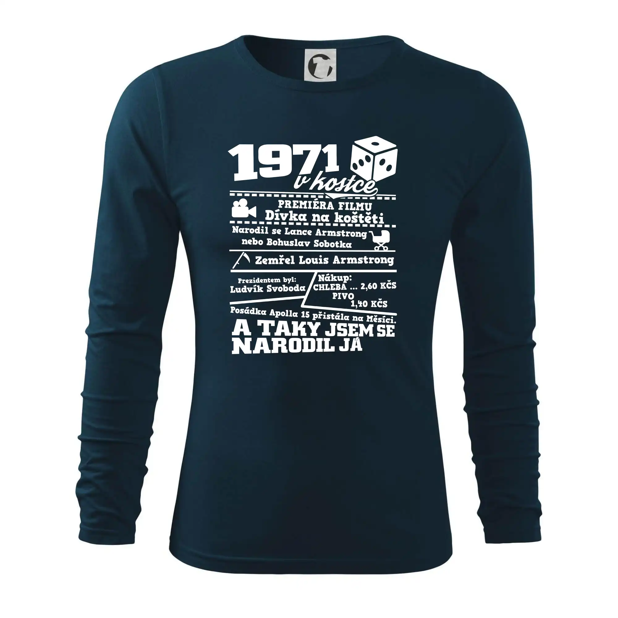Narozeninové tričko pro ročník 1971. Sháníš originální dárek? Triko pro ročník 1971 v kostce je ten nejlepší dárek, kterým jistě potěšíš. Kolik co stálo? Kdo byl prezident? Kdo se narodil? Všechno tohle a ještě mnohem víc najdeš na našem oslaveneckém triku!