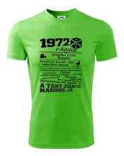 Narozeninové tričko pro ročník 1972. Sháníš originální dárek? Triko pro ročník 1972 v kostce je ten nejlepší dárek, kterým jistě potěšíš. Kolik co stálo? Kdo byl prezident? Kdo se narodil? Všechno tohle a ještě mnohem víc najdeš na našem oslaveneckém triku!