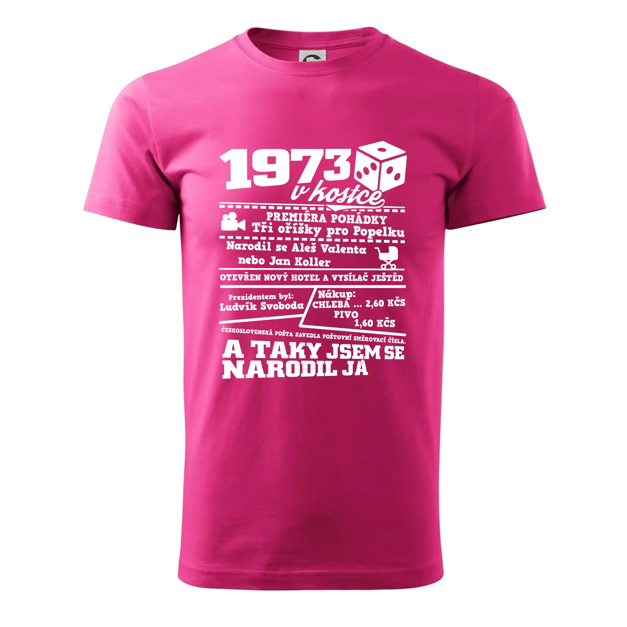 Narozeninové tričko pro ročník 1973. Sháníš originální dárek? Triko pro ročník 1973 v kostce je ten nejlepší dárek, kterým jistě potěšíš. Kolik co stálo? Kdo byl prezident? Kdo se narodil? Všechno tohle a ještě mnohem víc najdeš na našem oslaveneckém triku!