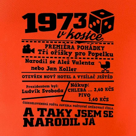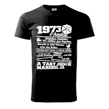 Narozeninové tričko pro ročník 1973. Sháníš originální dárek? Triko pro ročník 1973 v kostce je ten nejlepší dárek, kterým jistě potěšíš. Kolik co stálo? Kdo byl prezident? Kdo se narodil? Všechno tohle a ještě mnohem víc najdeš na našem oslaveneckém triku!