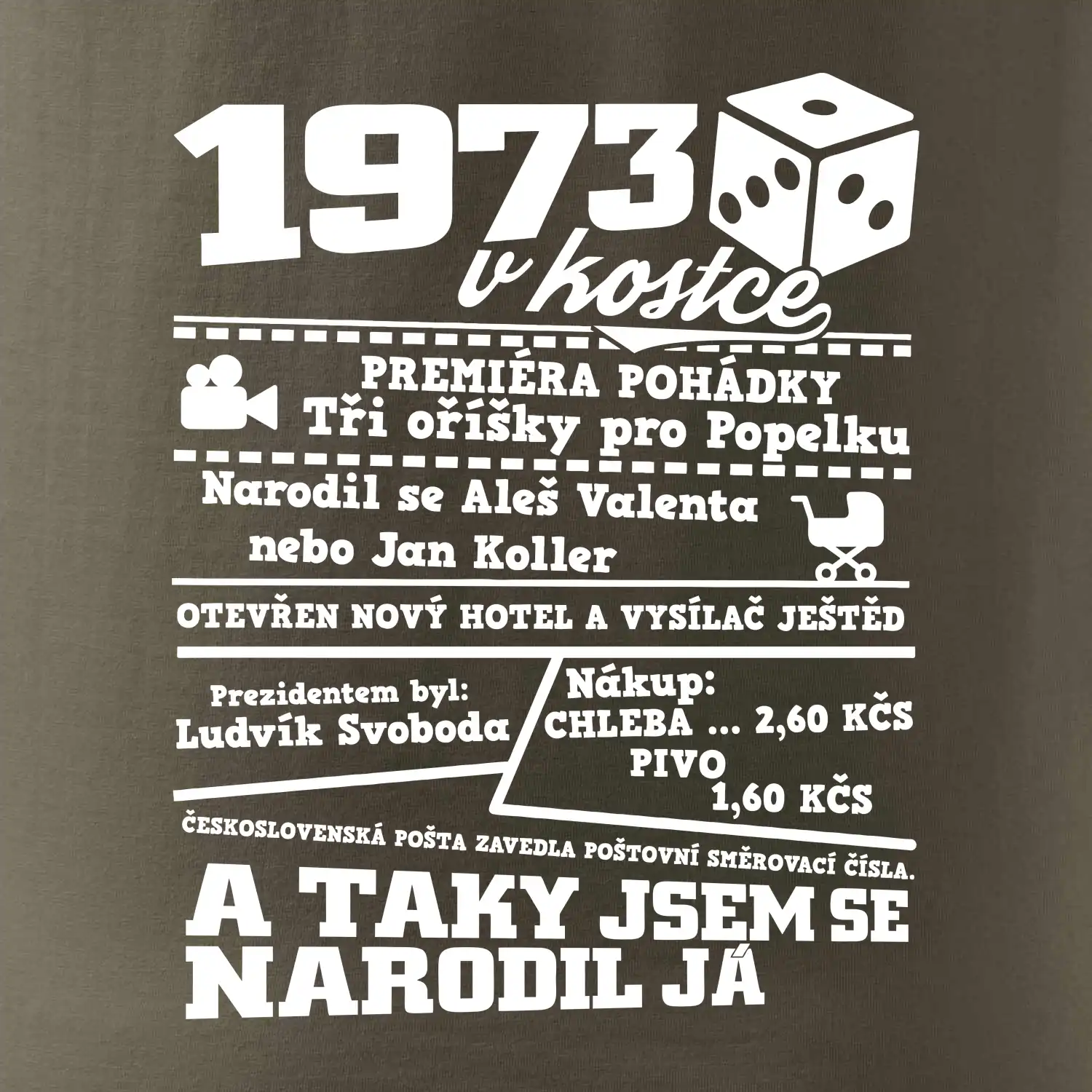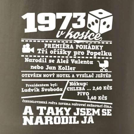 Narozeninové tričko pro ročník 1973. Sháníš originální dárek? Triko pro ročník 1973 v kostce je ten nejlepší dárek, kterým jistě potěšíš. Kolik co stálo? Kdo byl prezident? Kdo se narodil? Všechno tohle a ještě mnohem víc najdeš na našem oslaveneckém triku!