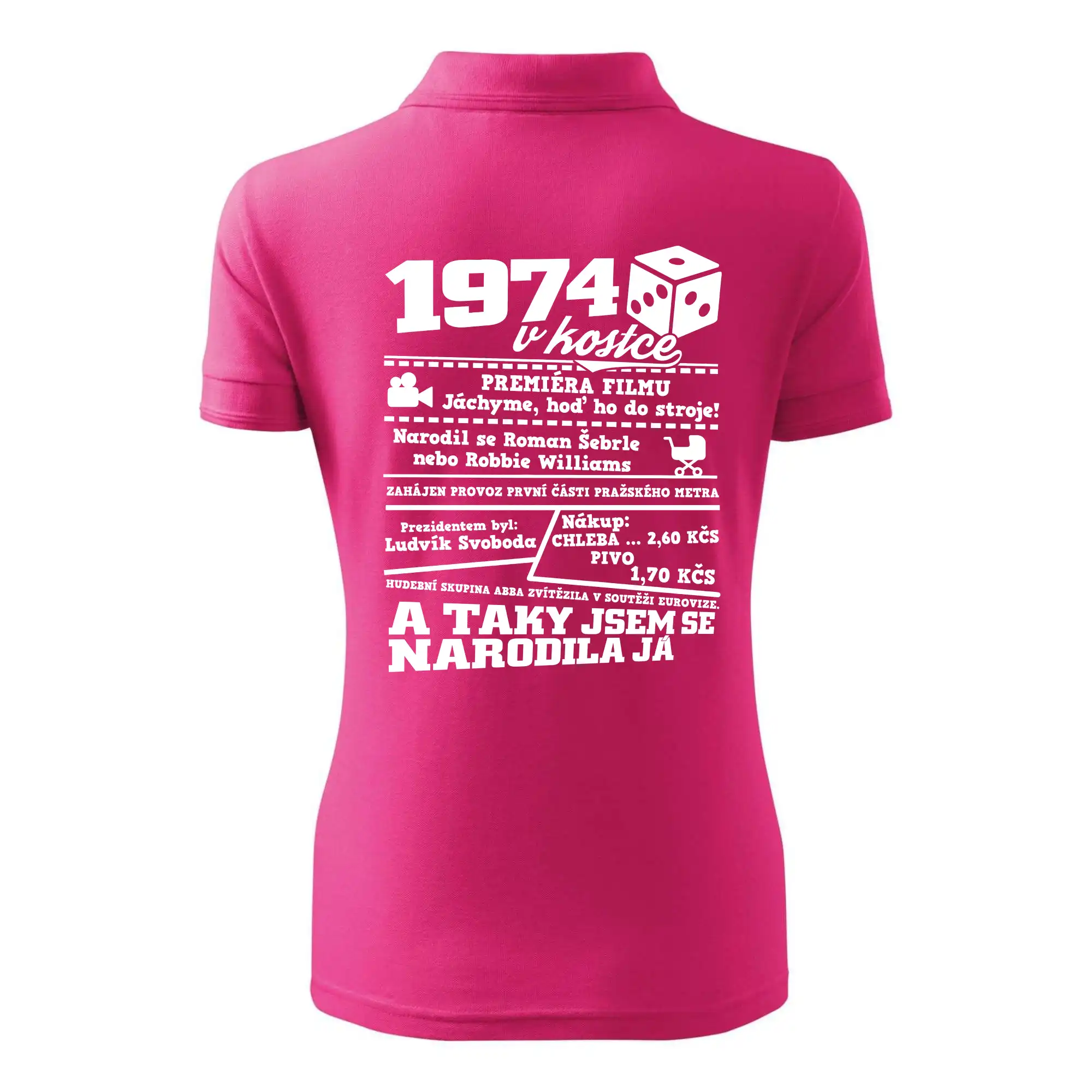 Narozeninové tričko pro ročník 1974. Sháníš originální dárek? Triko pro ročník 1974 v kostce je ten nejlepší dárek, kterým jistě potěšíš. Kolik co stálo? Kdo byl prezident? Kdo se narodil? Všechno tohle a ještě mnohem víc najdeš na našem oslaveneckém triku!