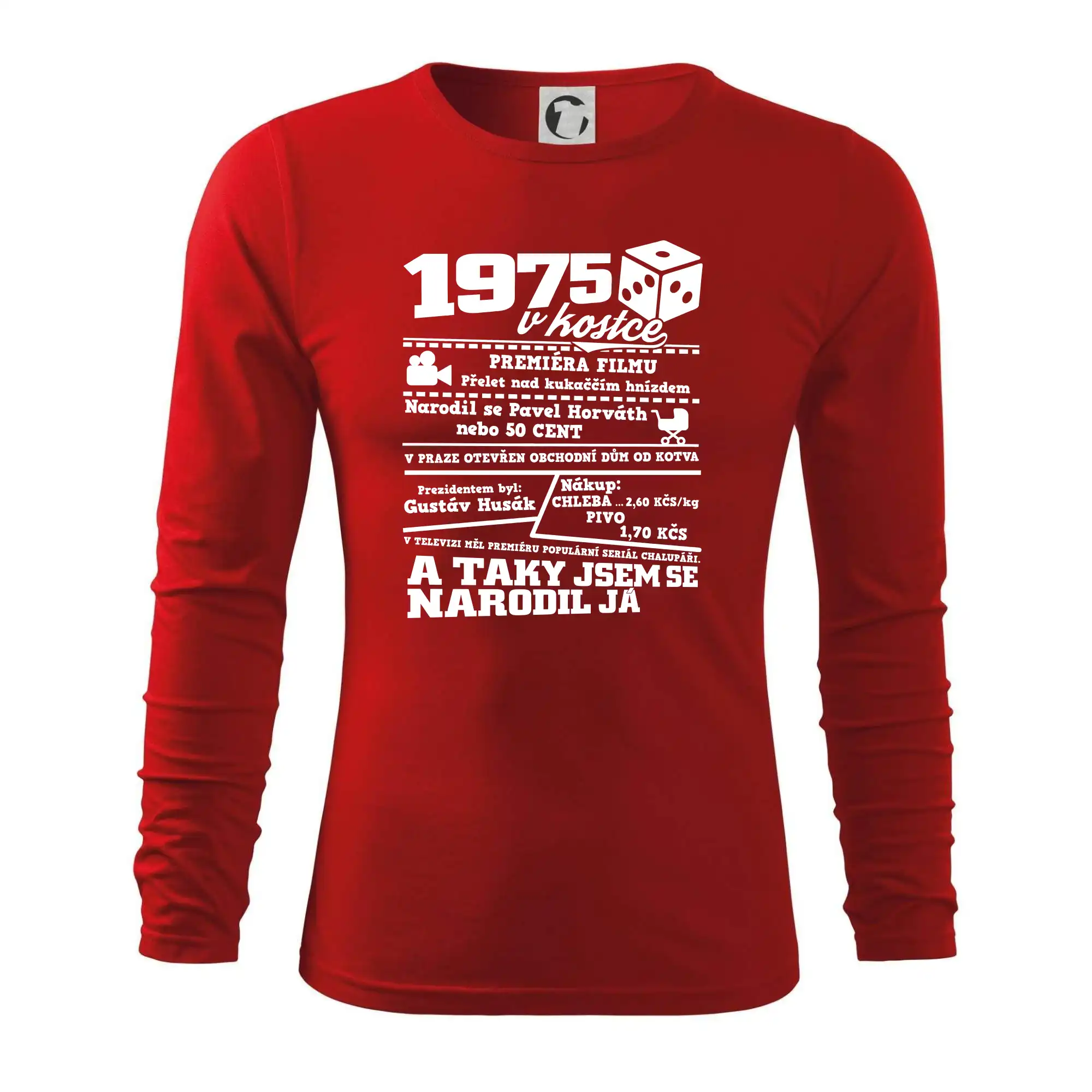 Narozeninové tričko pro ročník 1975. Sháníš originální dárek? Triko pro ročník 1975 v kostce je ten nejlepší dárek, kterým jistě potěšíš. Kolik co stálo? Kdo byl prezident? Kdo se narodil? Všechno tohle a ještě mnohem víc najdeš na našem oslaveneckém triku!