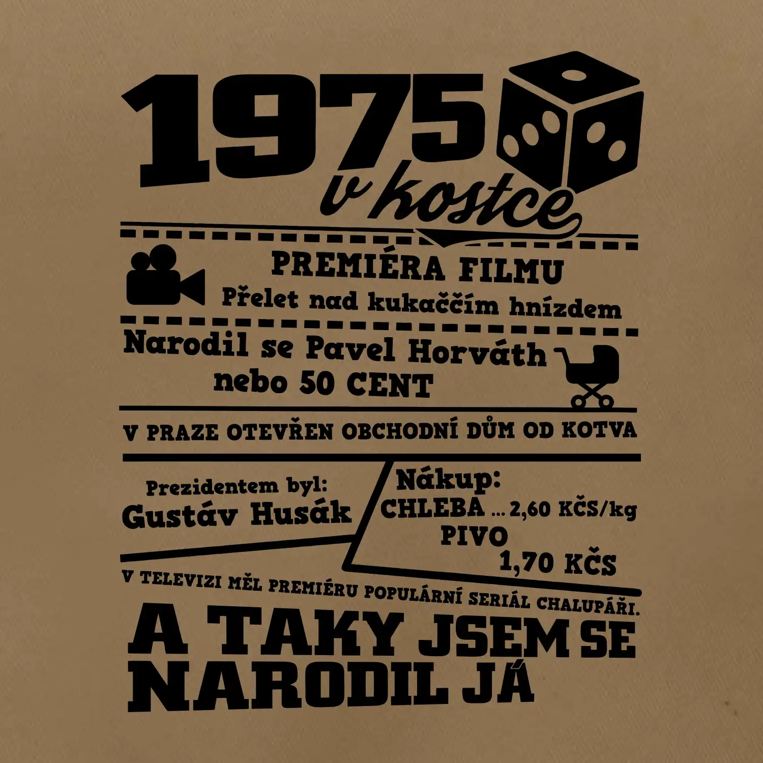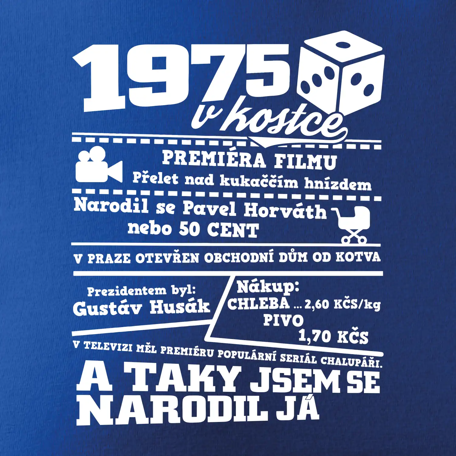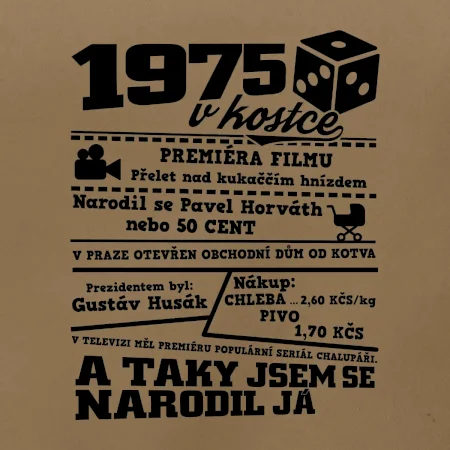 Polštář nebo taška "1975 v kostce" je stylovým způsobem, jak vyjádřit svou lásku k historickému roce 1975 a událostem, které se v té době udály. Toto tričko je vyrobeno z kvalitního materiálu, který je pohodlný na nošení po celý den. Jeho výrazný design zahrnuje významné události a nápisy spojené s rokem 1975, které jsou umístěny na přední straně.