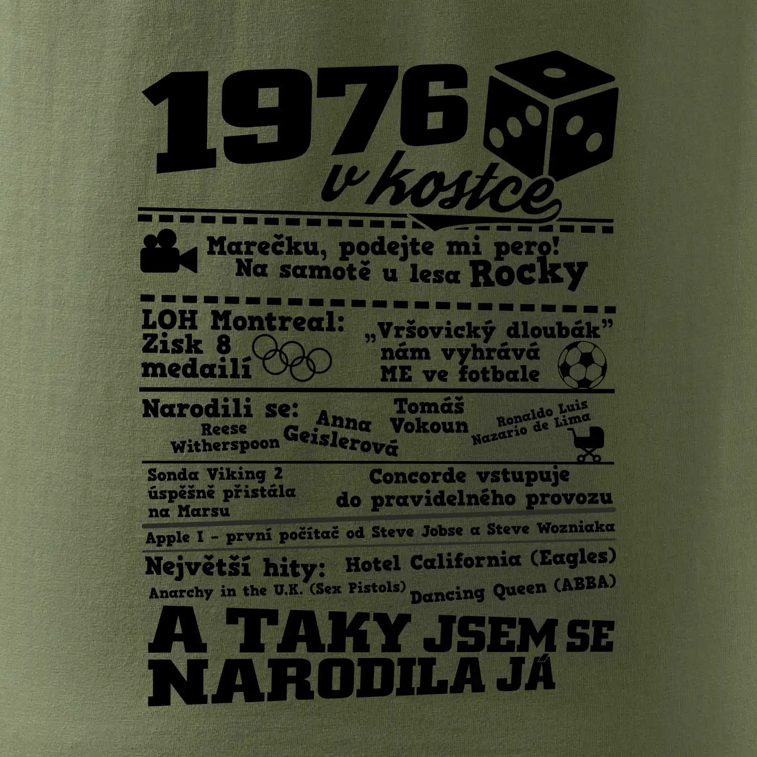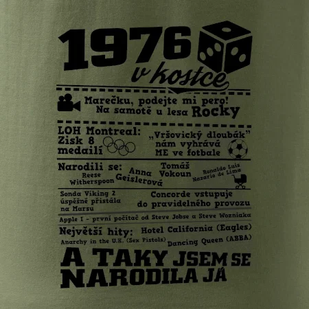 Narozeninové tričko pro ročník 1976. Sháníš originální dárek? Triko pro ročník 1976 v kostce je ten nejlepší dárek, kterým jistě potěšíš. Kolik co stálo? Kdo byl prezident? Kdo se narodil? Všechno tohle a ještě mnohem víc najdeš na našem oslaveneckém triku!