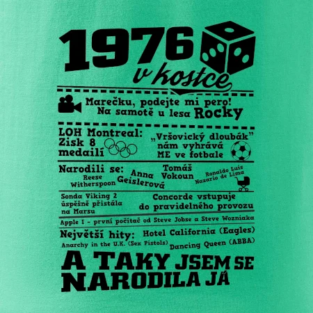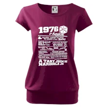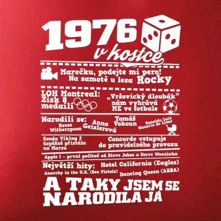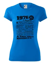 Narozeninové tričko pro ročník 1976. Sháníš originální dárek? Triko pro ročník 1976 v kostce je ten nejlepší dárek, kterým jistě potěšíš. Kolik co stálo? Kdo byl prezident? Kdo se narodil? Všechno tohle a ještě mnohem víc najdeš na našem oslaveneckém triku!