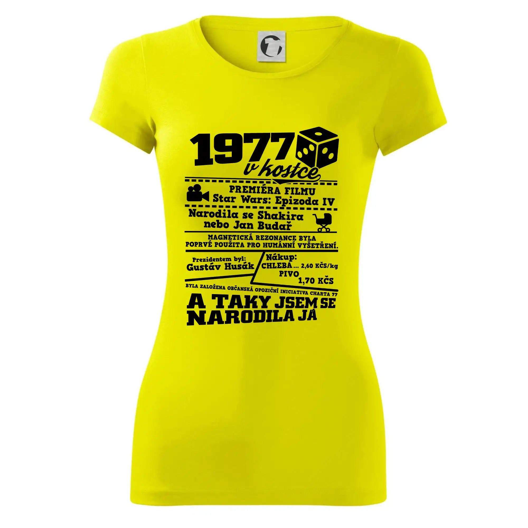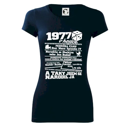 Narozeninové tričko pro ročník 1977. Sháníš originální dárek? Triko pro ročník 1977 v kostce je ten nejlepší dárek, kterým jistě potěšíš. Kolik co stálo? Kdo byl prezident? Kdo se narodil? Všechno tohle a ještě mnohem víc najdeš na našem oslaveneckém triku!