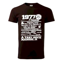 Narozeninové tričko pro ročník 1977. Sháníš originální dárek? Triko pro ročník 1977 v kostce je ten nejlepší dárek, kterým jistě potěšíš. Kolik co stálo? Kdo byl prezident? Kdo se narodil? Všechno tohle a ještě mnohem víc najdeš na našem oslaveneckém triku!
