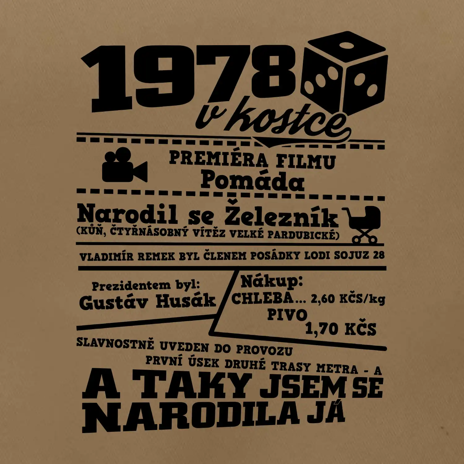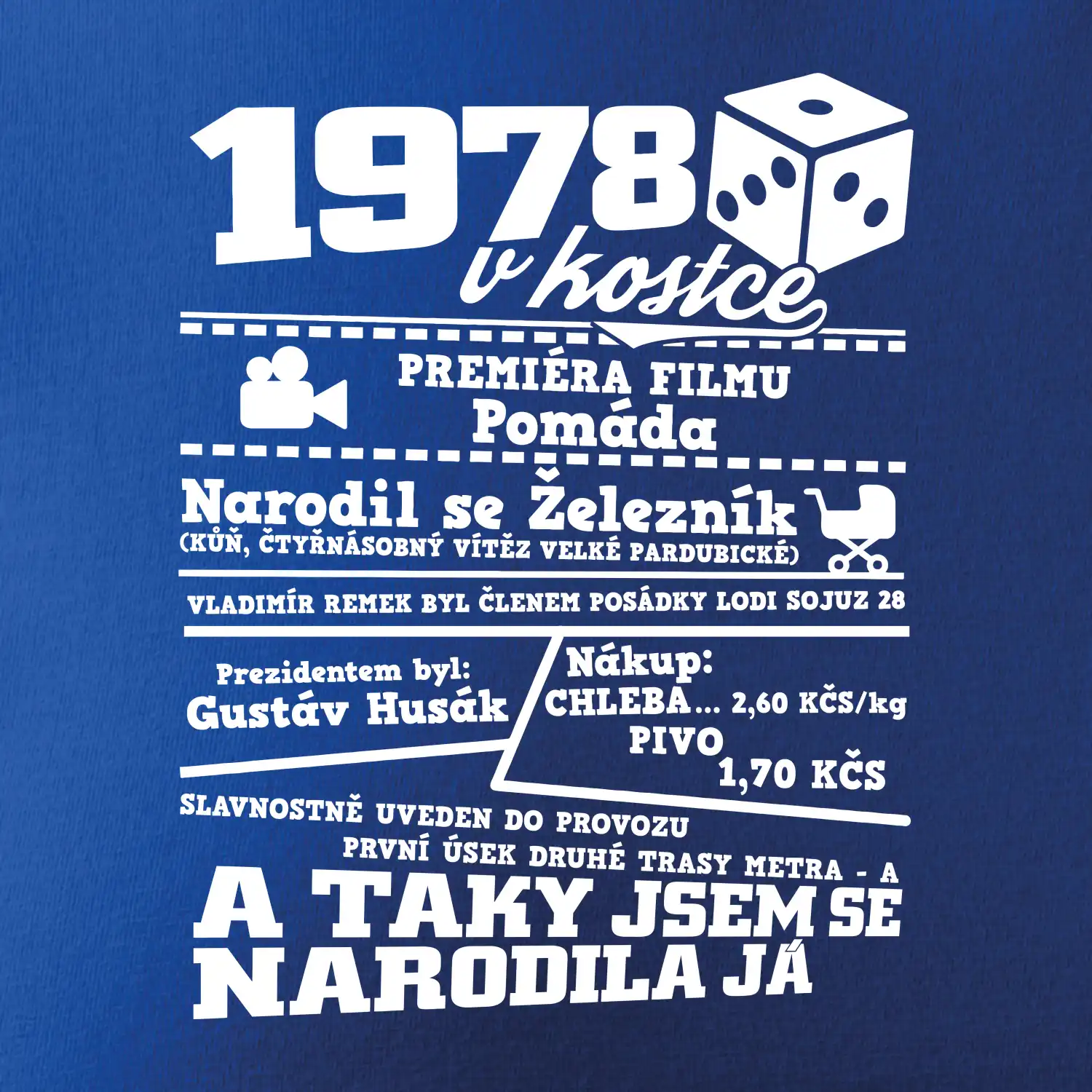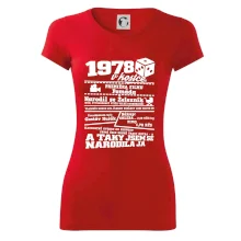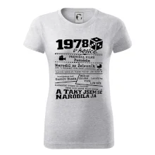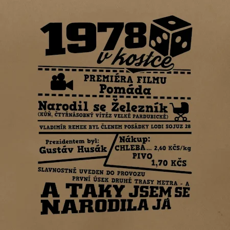 Narozeninové tričko pro ročník 1978. Sháníš originální dárek? Triko pro ročník 1978 v kostce je ten nejlepší dárek, kterým jistě potěšíš. Kolik co stálo? Kdo byl prezident? Kdo se narodil? Všechno tohle a ještě mnohem víc najdeš na našem oslaveneckém triku!
