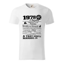 Narozeninové tričko pro ročník 1978. Sháníš originální dárek? Triko pro ročník 1978 v kostce je ten nejlepší dárek, kterým jistě potěšíš. Kolik co stálo? Kdo byl prezident? Kdo se narodil? Všechno tohle a ještě mnohem víc najdeš na našem oslaveneckém triku!