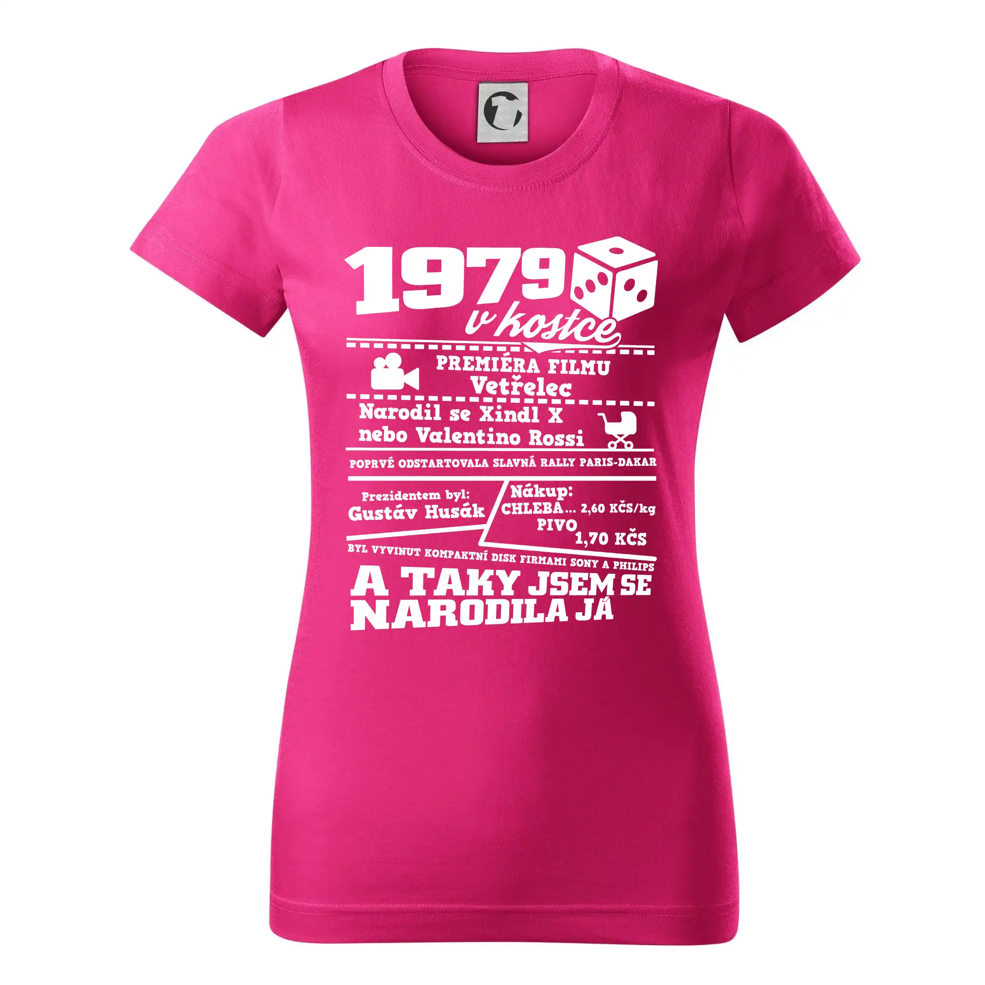 Narozeninové tričko pro ročník 1979. Sháníš originální dárek? Triko pro ročník 1979 v kostce je ten nejlepší dárek, kterým jistě potěšíš. Kolik co stálo? Kdo byl prezident? Kdo se narodil? Všechno tohle a ještě mnohem víc najdeš na našem oslaveneckém triku!