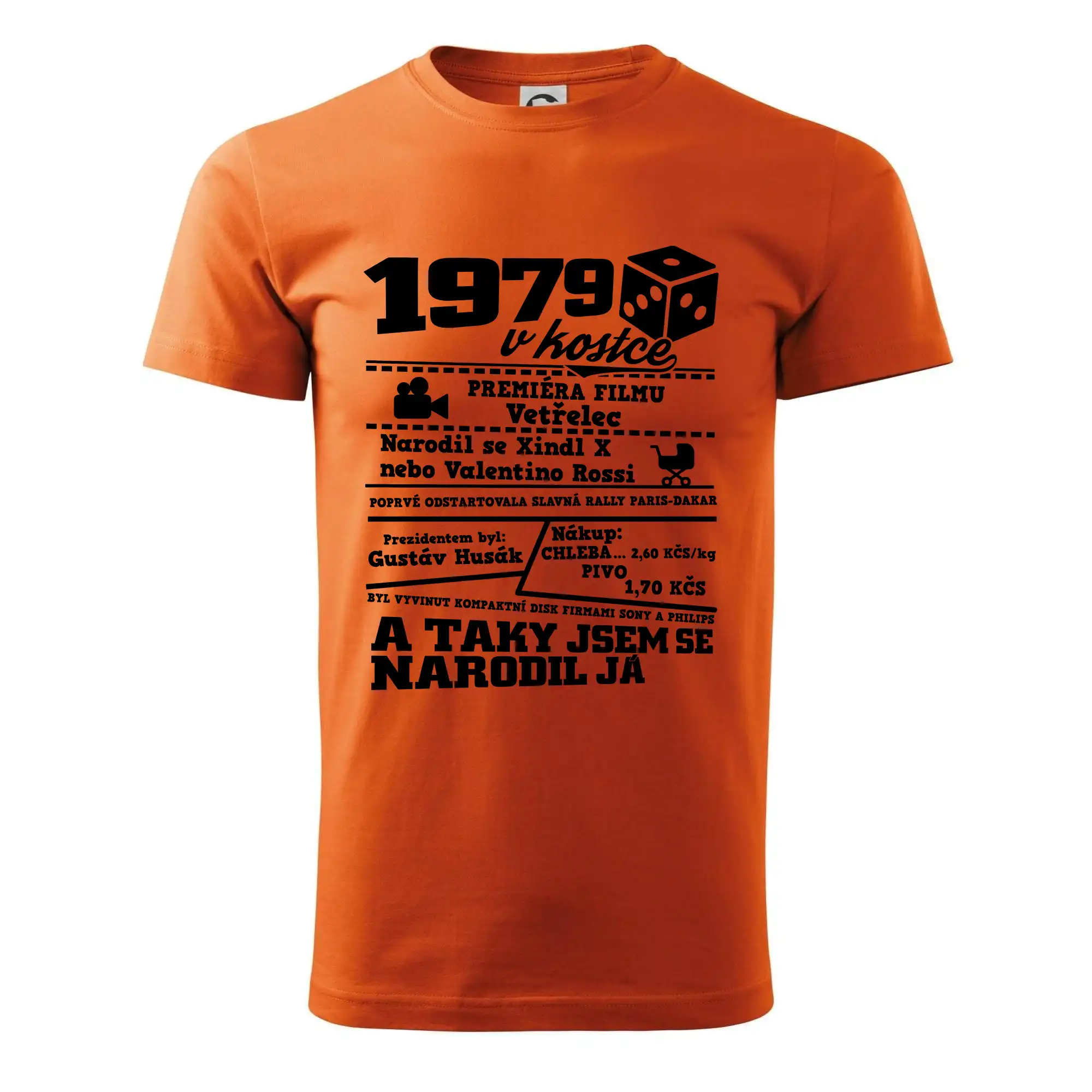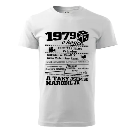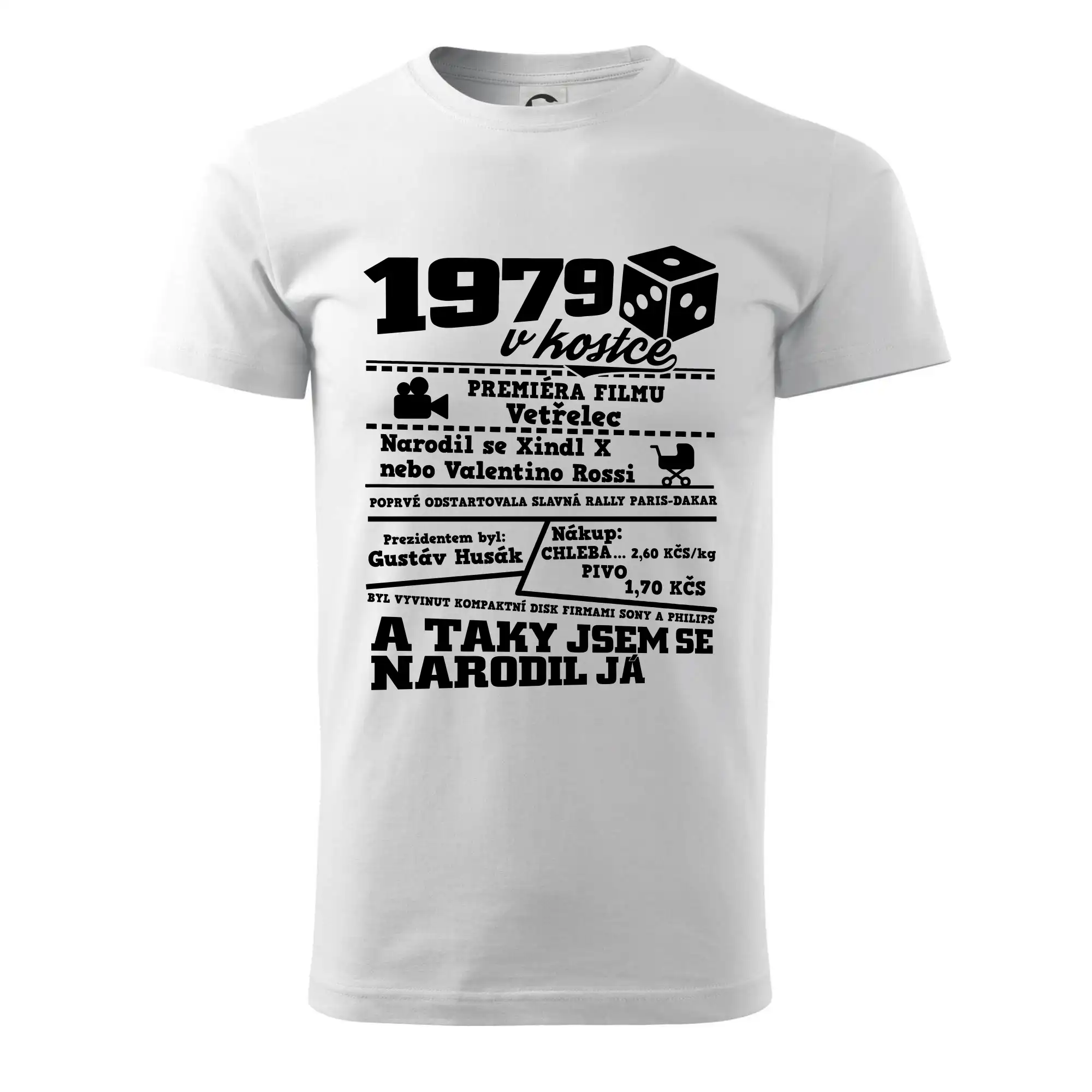 Narozeninové tričko pro ročník 1979. Sháníš originální dárek? Triko pro ročník 1979 v kostce je ten nejlepší dárek, kterým jistě potěšíš. Kolik co stálo? Kdo byl prezident? Kdo se narodil? Všechno tohle a ještě mnohem víc najdeš na našem oslaveneckém triku!