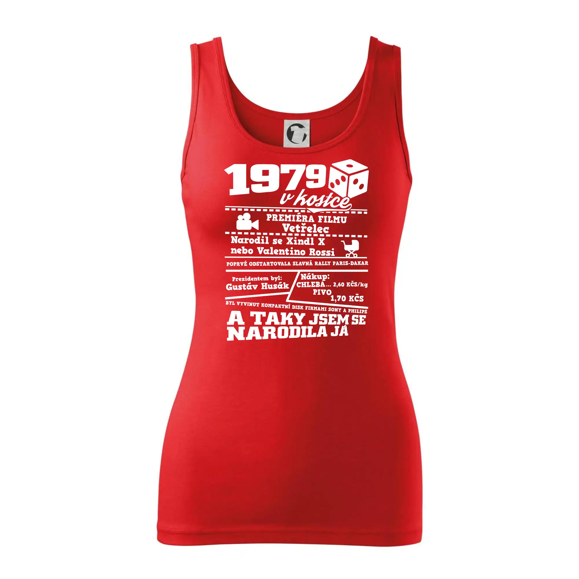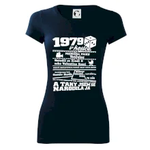 Narozeninové tričko pro ročník 1979. Sháníš originální dárek? Triko pro ročník 1979 v kostce je ten nejlepší dárek, kterým jistě potěšíš. Kolik co stálo? Kdo byl prezident? Kdo se narodil? Všechno tohle a ještě mnohem víc najdeš na našem oslaveneckém triku!
