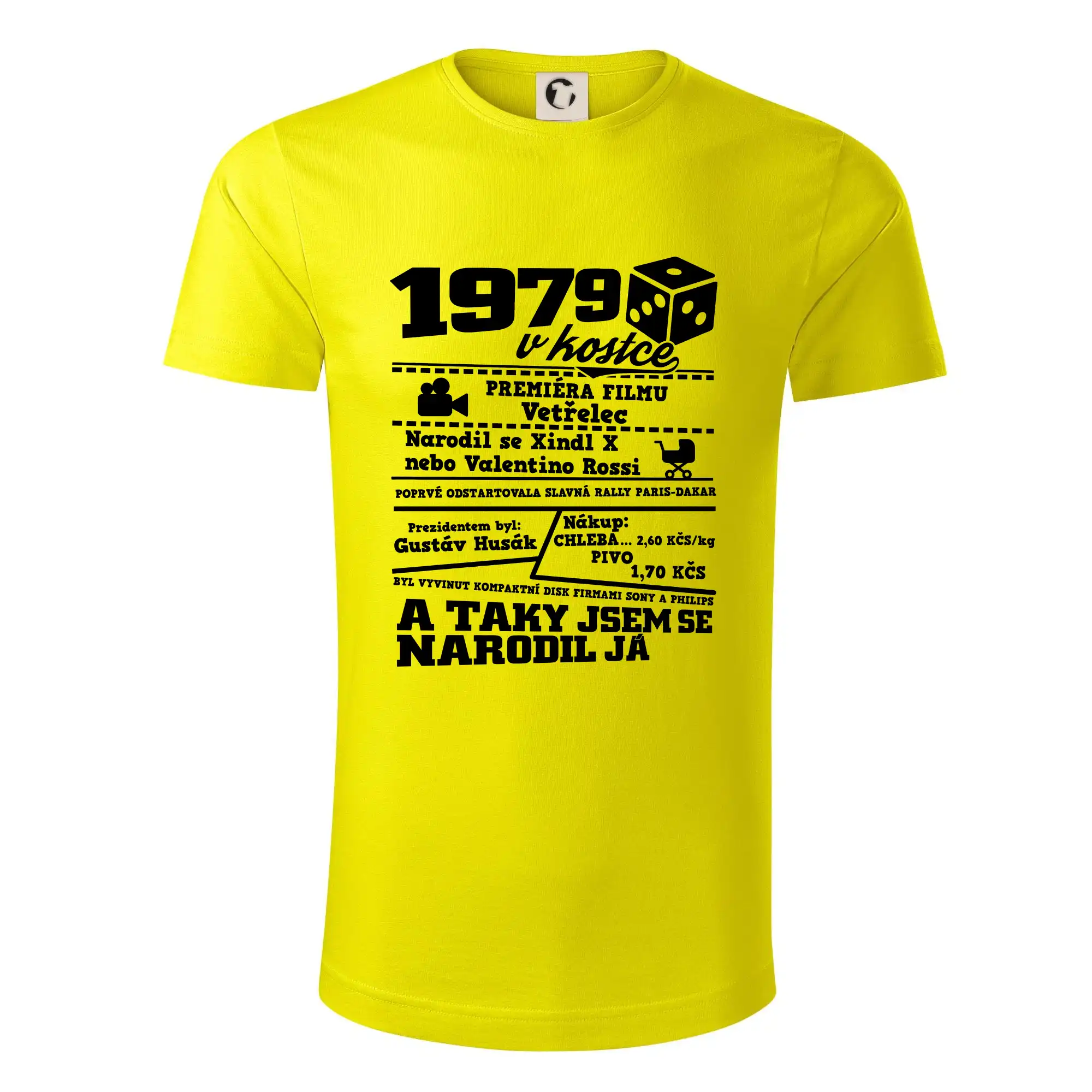Narozeninové tričko pro ročník 1979. Sháníš originální dárek? Triko pro ročník 1979 v kostce je ten nejlepší dárek, kterým jistě potěšíš. Kolik co stálo? Kdo byl prezident? Kdo se narodil? Všechno tohle a ještě mnohem víc najdeš na našem oslaveneckém triku!