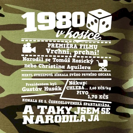 Narozeninové tričko pro ročník 1980. Sháníš originální dárek? Triko pro ročník 1980 v kostce je ten nejlepší dárek, kterým jistě potěšíš. Kolik co stálo? Kdo byl prezident? Kdo se narodil? Všechno tohle a ještě mnohem víc najdeš na našem oslaveneckém triku!