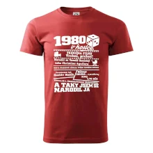 Narozeninové tričko pro ročník 1980. Sháníš originální dárek? Triko pro ročník 1980 v kostce je ten nejlepší dárek, kterým jistě potěšíš. Kolik co stálo? Kdo byl prezident? Kdo se narodil? Všechno tohle a ještě mnohem víc najdeš na našem oslaveneckém triku!