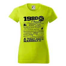 Narozeninové tričko pro ročník 1980. Sháníš originální dárek? Triko pro ročník 1980 v kostce je ten nejlepší dárek, kterým jistě potěšíš. Kolik co stálo? Kdo byl prezident? Kdo se narodil? Všechno tohle a ještě mnohem víc najdeš na našem oslaveneckém triku!