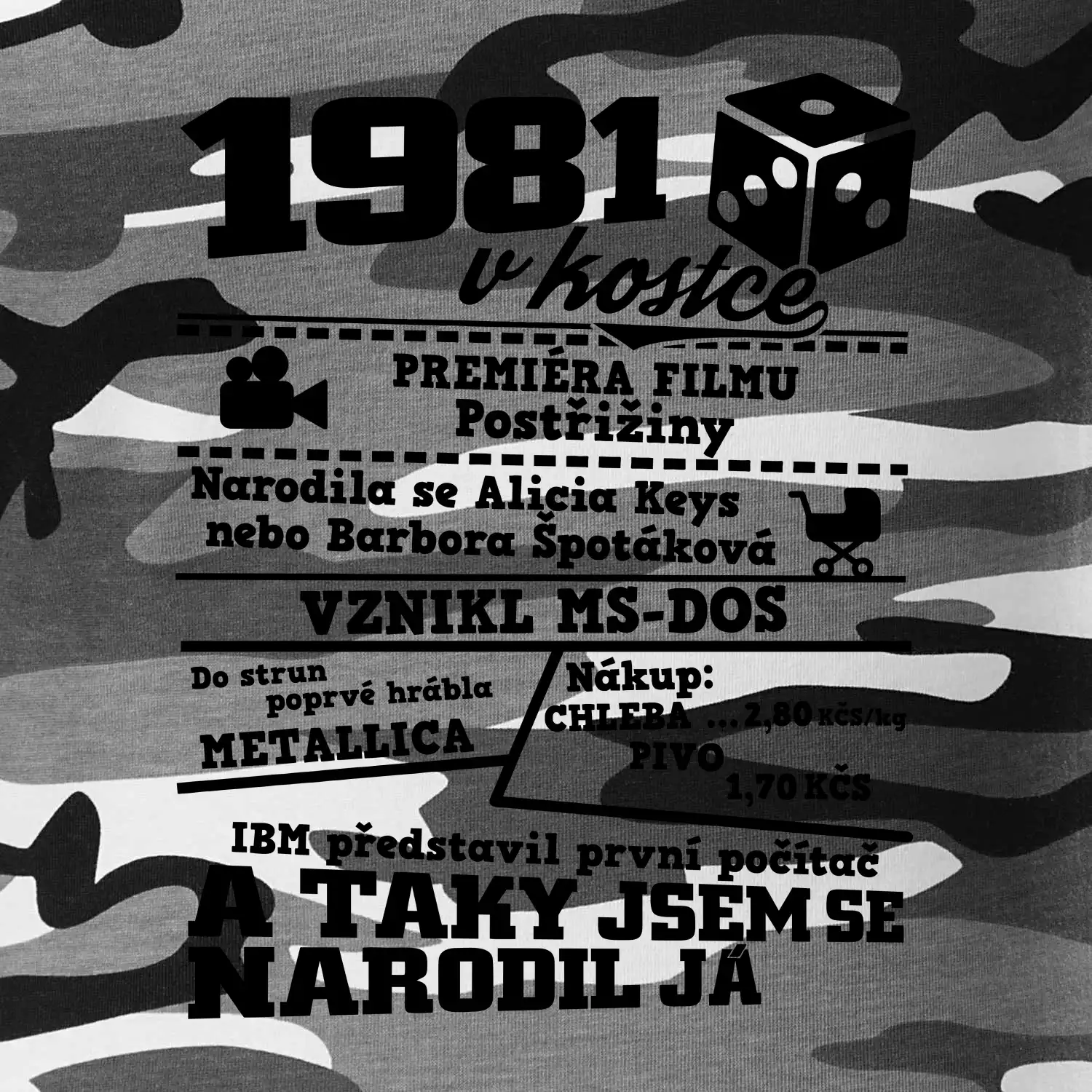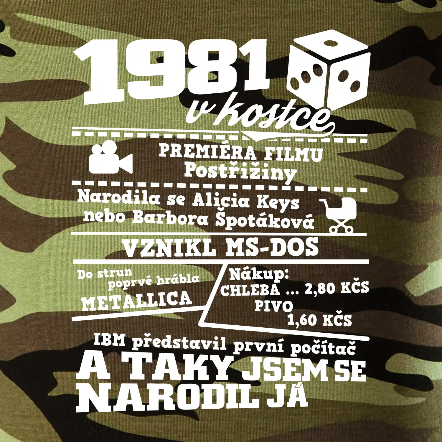 Narozeninové tričko pro ročník 1981. Sháníš originální dárek? Triko pro ročník 1981 v kostce je ten nejlepší dárek, kterým jistě potěšíš. Kolik co stálo? Kdo byl prezident? Kdo se narodil? Všechno tohle a ještě mnohem víc najdeš na našem oslaveneckém triku!