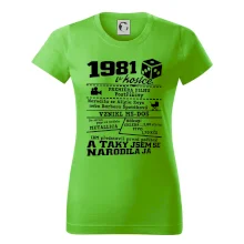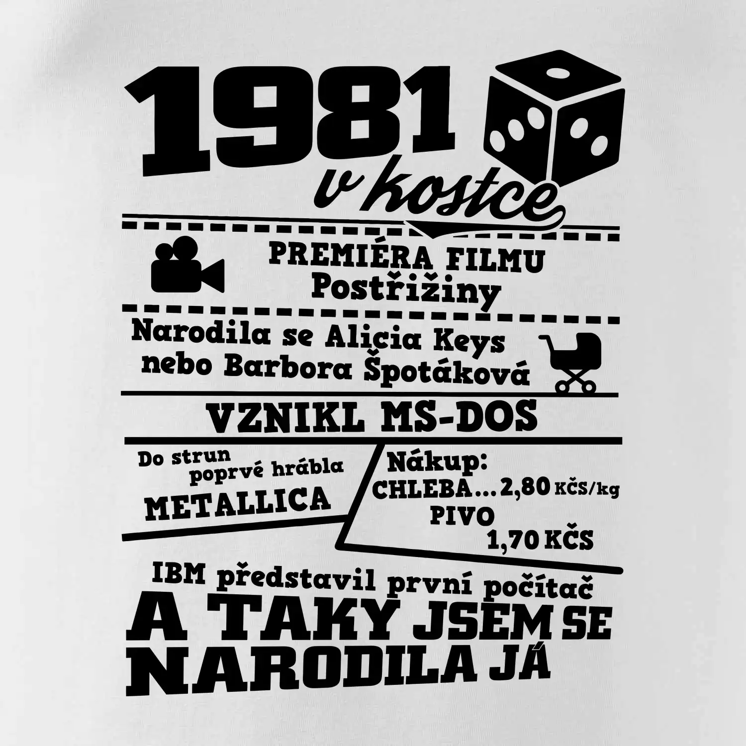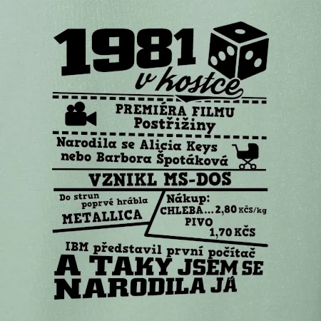 Narozeninové tričko pro ročník 1981. Sháníš originální dárek? Triko pro ročník 1981 v kostce je ten nejlepší dárek, kterým jistě potěšíš. Kolik co stálo? Kdo byl prezident? Kdo se narodil? Všechno tohle a ještě mnohem víc najdeš na našem oslaveneckém triku!