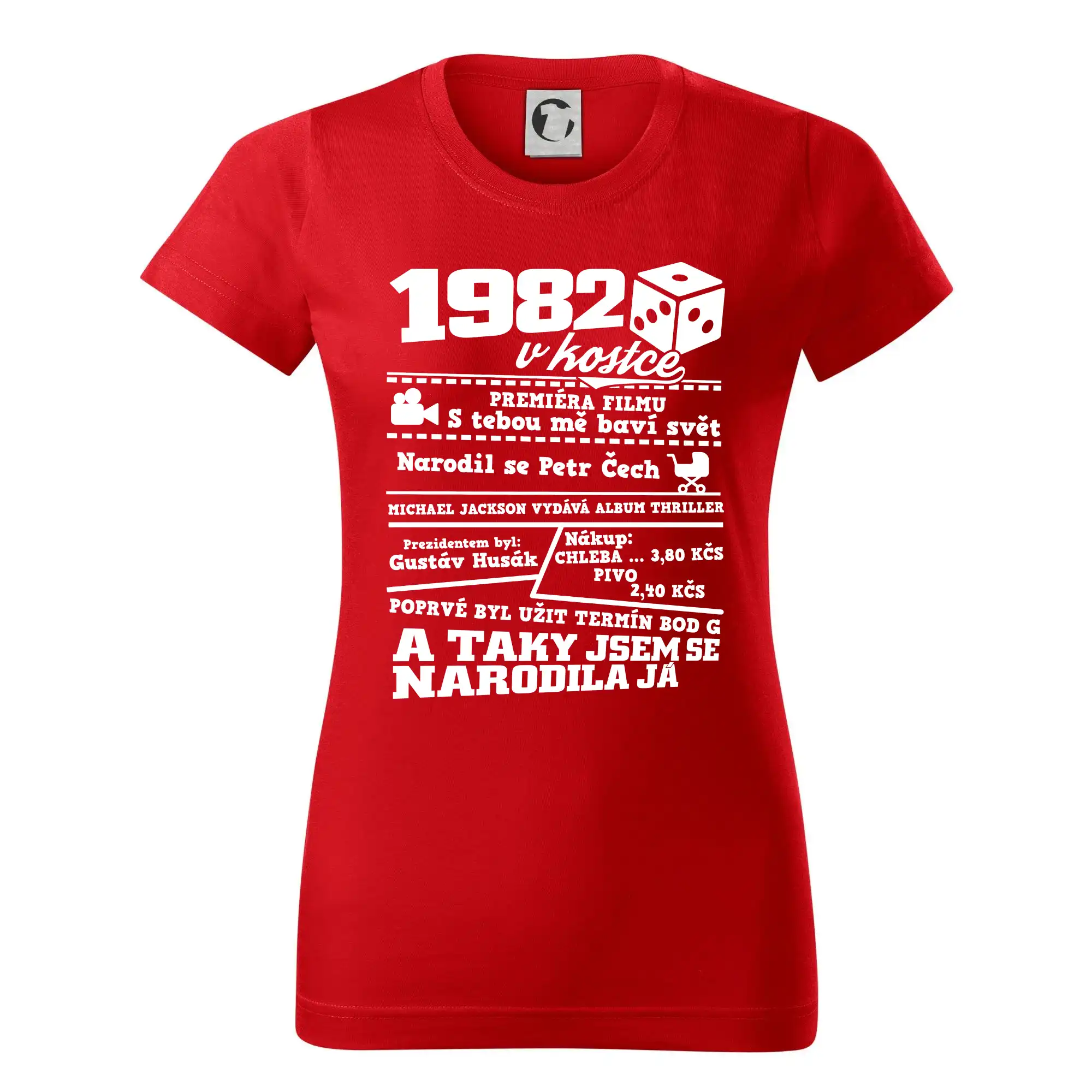 Narozeninové tričko pro ročník 1982. Sháníš originální dárek? Triko pro ročník 1982 v kostce je ten nejlepší dárek, kterým jistě potěšíš. Kolik co stálo? Kdo byl prezident? Kdo se narodil? Všechno tohle a ještě mnohem víc najdeš na našem oslaveneckém triku!