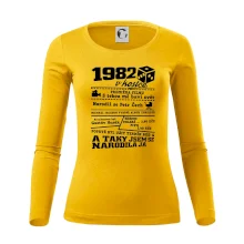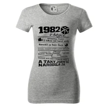 Narozeninové tričko pro ročník 1982. Sháníš originální dárek? Triko pro ročník 1982 v kostce je ten nejlepší dárek, kterým jistě potěšíš. Kolik co stálo? Kdo byl prezident? Kdo se narodil? Všechno tohle a ještě mnohem víc najdeš na našem oslaveneckém triku!