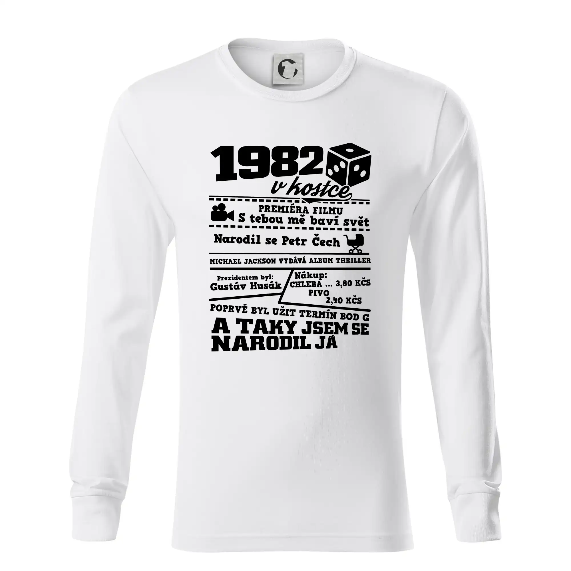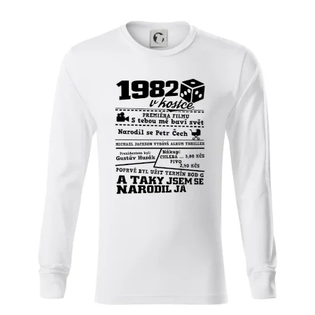 Narozeninové tričko pro ročník 1982. Sháníš originální dárek? Triko pro ročník 1982 v kostce je ten nejlepší dárek, kterým jistě potěšíš. Kolik co stálo? Kdo byl prezident? Kdo se narodil? Všechno tohle a ještě mnohem víc najdeš na našem oslaveneckém triku!