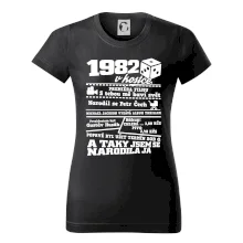 Narozeninové tričko pro ročník 1982. Sháníš originální dárek? Triko pro ročník 1982 v kostce je ten nejlepší dárek, kterým jistě potěšíš. Kolik co stálo? Kdo byl prezident? Kdo se narodil? Všechno tohle a ještě mnohem víc najdeš na našem oslaveneckém triku!