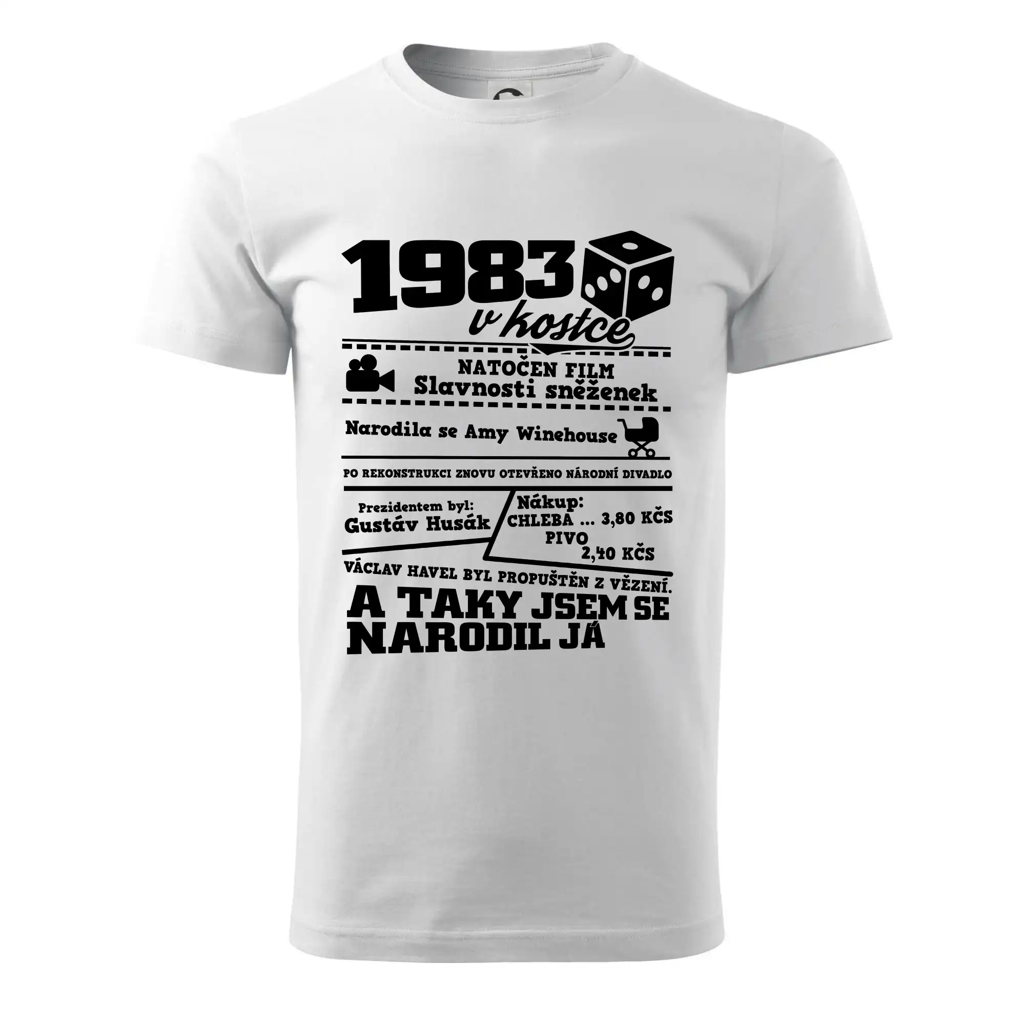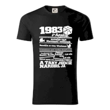Narozeninové tričko pro ročník 1983. Sháníš originální dárek? Triko pro ročník 1983 v kostce je ten nejlepší dárek, kterým jistě potěšíš. Kolik co stálo? Kdo byl prezident? Kdo se narodil? Všechno tohle a ještě mnohem víc najdeš na našem oslaveneckém triku!