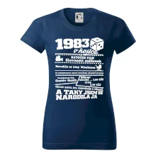 Narozeninové tričko pro ročník 1983. Sháníš originální dárek? Triko pro ročník 1983 v kostce je ten nejlepší dárek, kterým jistě potěšíš. Kolik co stálo? Kdo byl prezident? Kdo se narodil? Všechno tohle a ještě mnohem víc najdeš na našem oslaveneckém triku!