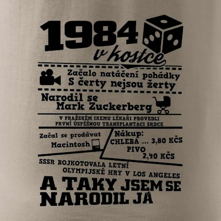 Narozeninové tričko pro ročník 1984. Sháníš originální dárek? Triko pro ročník 1984 v kostce je ten nejlepší dárek, kterým jistě potěšíš. Kolik co stálo? Kdo byl prezident? Kdo se narodil? Všechno tohle a ještě mnohem víc najdeš na našem oslaveneckém triku!