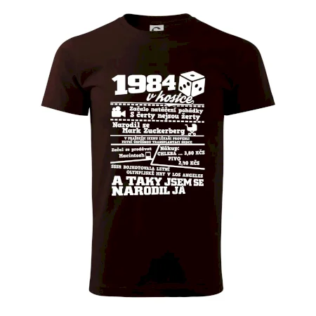 Narozeninové tričko pro ročník 1984. Sháníš originální dárek? Triko pro ročník 1984 v kostce je ten nejlepší dárek, kterým jistě potěšíš. Kolik co stálo? Kdo byl prezident? Kdo se narodil? Všechno tohle a ještě mnohem víc najdeš na našem oslaveneckém triku!