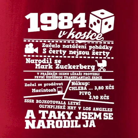 Narozeninové tričko pro ročník 1984. Sháníš originální dárek? Triko pro ročník 1984 v kostce je ten nejlepší dárek, kterým jistě potěšíš. Kolik co stálo? Kdo byl prezident? Kdo se narodil? Všechno tohle a ještě mnohem víc najdeš na našem oslaveneckém triku!