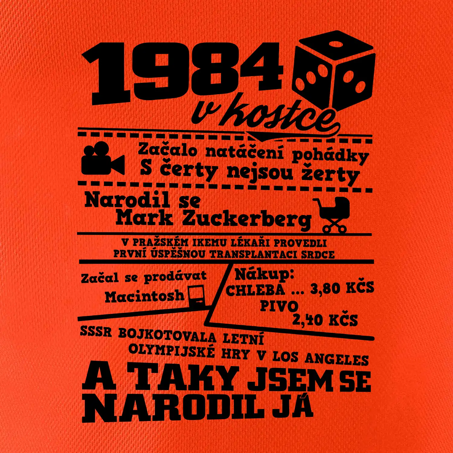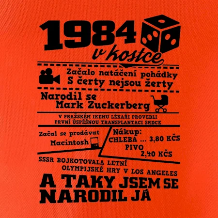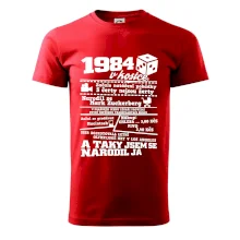 Narozeninové tričko pro ročník 1984. Sháníš originální dárek? Triko pro ročník 1984 v kostce je ten nejlepší dárek, kterým jistě potěšíš. Kolik co stálo? Kdo byl prezident? Kdo se narodil? Všechno tohle a ještě mnohem víc najdeš na našem oslaveneckém triku!