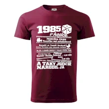 Narozeninové tričko pro ročník 1985. Sháníš originální dárek? Triko pro ročník 1985 v kostce je ten nejlepší dárek, kterým jistě potěšíš. Kolik co stálo? Kdo byl prezident? Kdo se narodil? Všechno tohle a ještě mnohem víc najdeš na našem oslaveneckém triku!