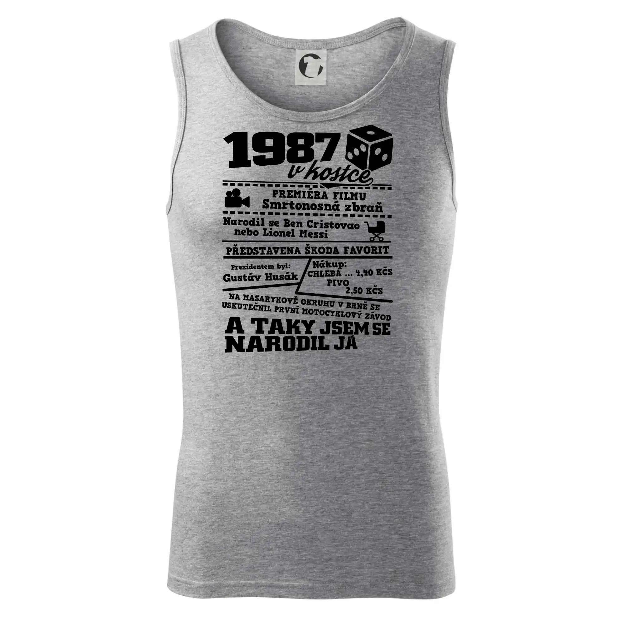 Narozeninové tričko pro ročník 1987. Sháníš originální dárek? Triko pro ročník 1987 v kostce je ten nejlepší dárek, kterým jistě potěšíš. Kolik co stálo? Kdo byl prezident? Kdo se narodil? Všechno tohle a ještě mnohem víc najdeš na našem oslaveneckém triku!
