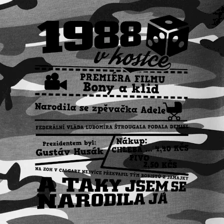 Narozeninové tričko pro ročník 1988. Sháníš originální dárek? Triko pro ročník 1988 v kostce je ten nejlepší dárek, kterým jistě potěšíš. Kolik co stálo? Kdo byl prezident? Kdo se narodil? Všechno tohle a ještě mnohem víc najdeš na našem oslaveneckém triku!