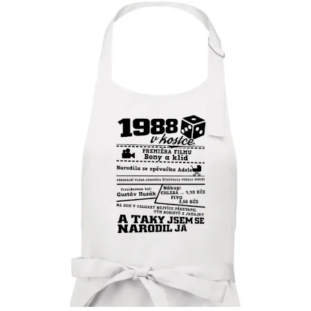 Narozeninové tričko pro ročník 1988. Sháníš originální dárek? Triko pro ročník 1988 v kostce je ten nejlepší dárek, kterým jistě potěšíš. Kolik co stálo? Kdo byl prezident? Kdo se narodil? Všechno tohle a ještě mnohem víc najdeš na našem oslaveneckém triku!
