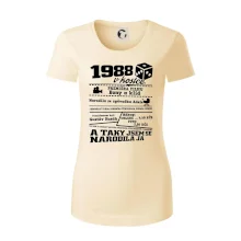 Narozeninové tričko pro ročník 1988. Sháníš originální dárek? Triko pro ročník 1988 v kostce je ten nejlepší dárek, kterým jistě potěšíš. Kolik co stálo? Kdo byl prezident? Kdo se narodil? Všechno tohle a ještě mnohem víc najdeš na našem oslaveneckém triku!