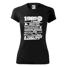 Narozeninové tričko pro ročník 1989. Sháníš originální dárek? Triko pro ročník 1989 v kostce je ten nejlepší dárek, kterým jistě potěšíš. Kolik co stálo? Kdo byl prezident? Kdo se narodil? Všechno tohle a ještě mnohem víc najdeš na našem oslaveneckém triku!