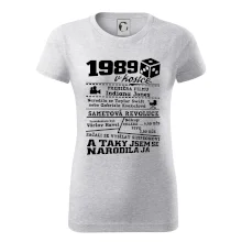 Narozeninové tričko pro ročník 1989. Sháníš originální dárek? Triko pro ročník 1989 v kostce je ten nejlepší dárek, kterým jistě potěšíš. Kolik co stálo? Kdo byl prezident? Kdo se narodil? Všechno tohle a ještě mnohem víc najdeš na našem oslaveneckém triku!
